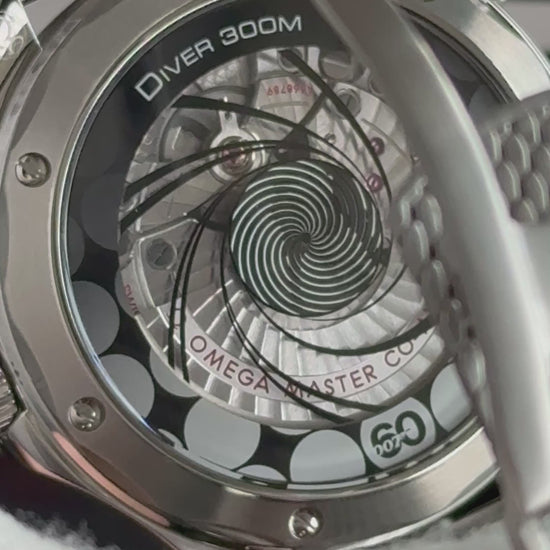 Lanzado para celebrar las seis décadas de 007 en la pantalla, el OMEGA Seamaster Diver 300M en acero noble está repleto de homenajes a las películas de Bond, incluido una alusión atractiva y dinámica a la icónica secuencia de inicio, conocida y amada por los fans de Bond de todo el mundo.