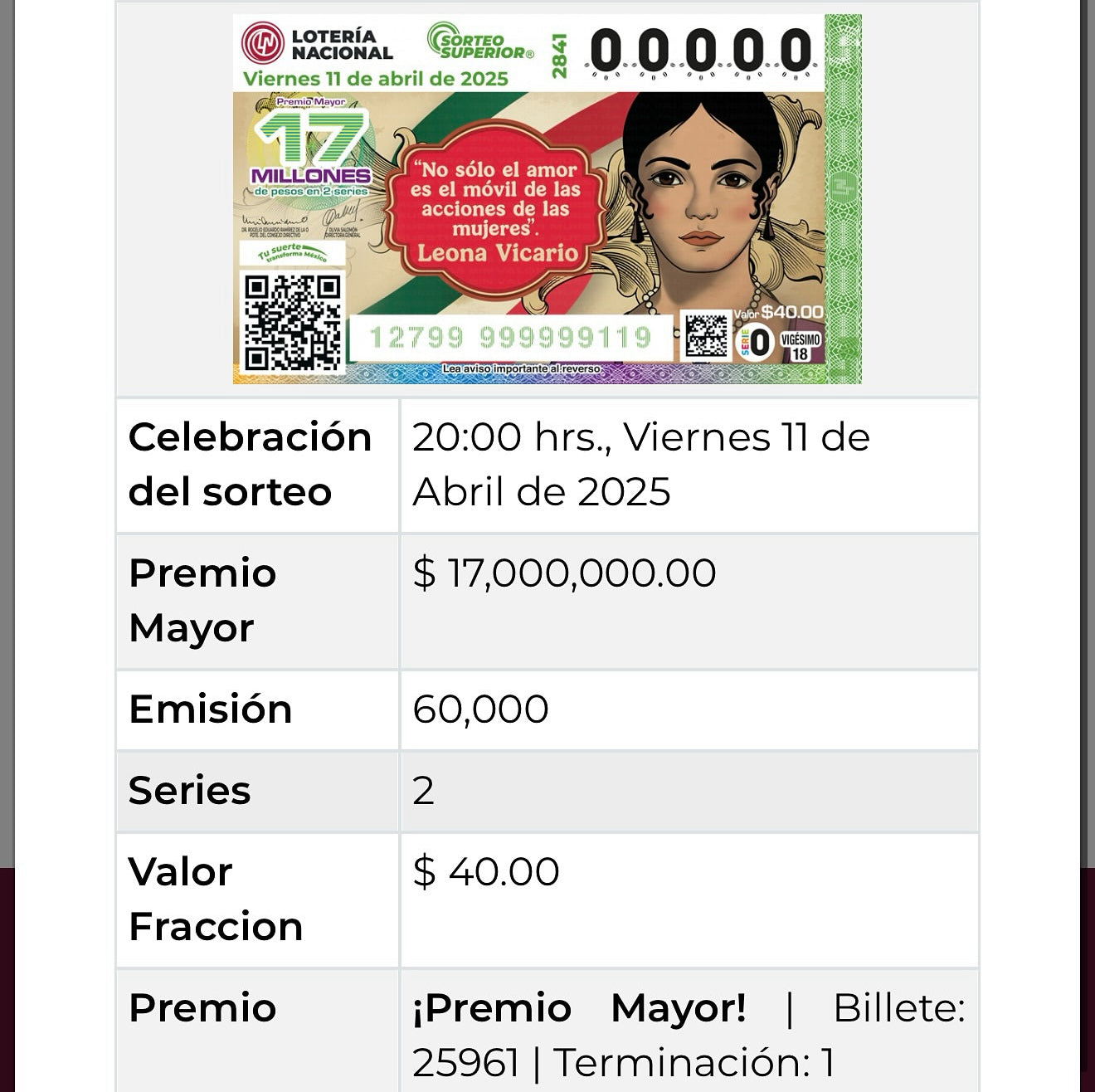 Los resultados son oficiales y verificables en la siguiente página de la Lotería Nacional: https://www.loterianacional.gob.mx/Home/Resultados