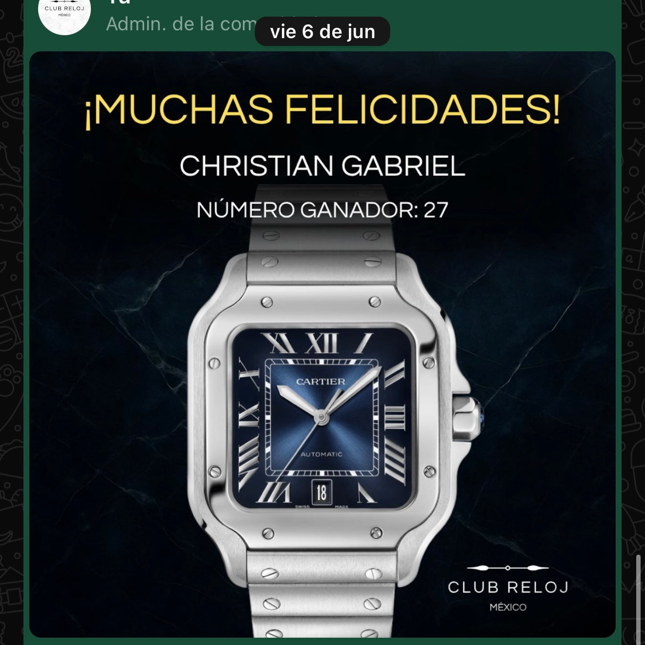 De ganarte esta pieza ten la seguridad que recibirás un Cartier original, nuevo y de buen funcionamiento.